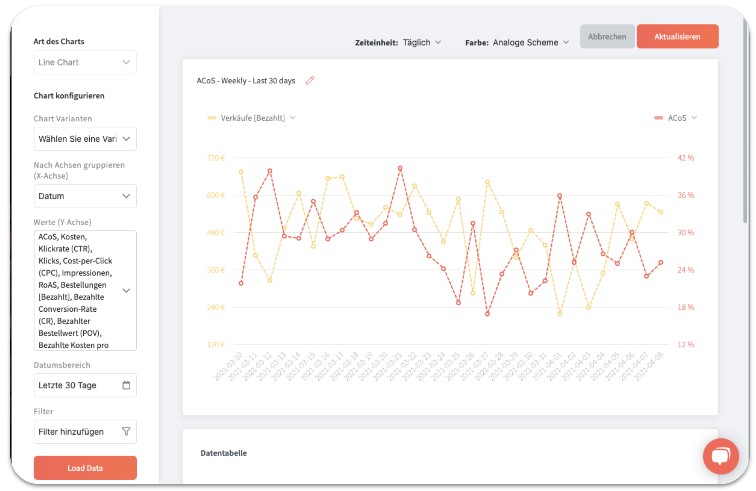 Hinweis: Standardgemäß werden die Daten der letzten 30 Tagen angezeigt.