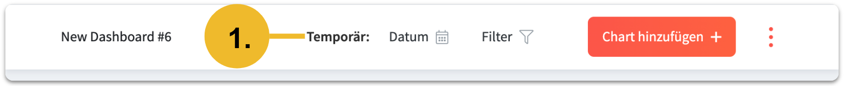 Sie wollen nachträglich das Dashboard umbenennen? Kein Problem! Klicken Sie einfach auf das Dropdown Menü oben rechts, um das Dashboard umzubenennen.