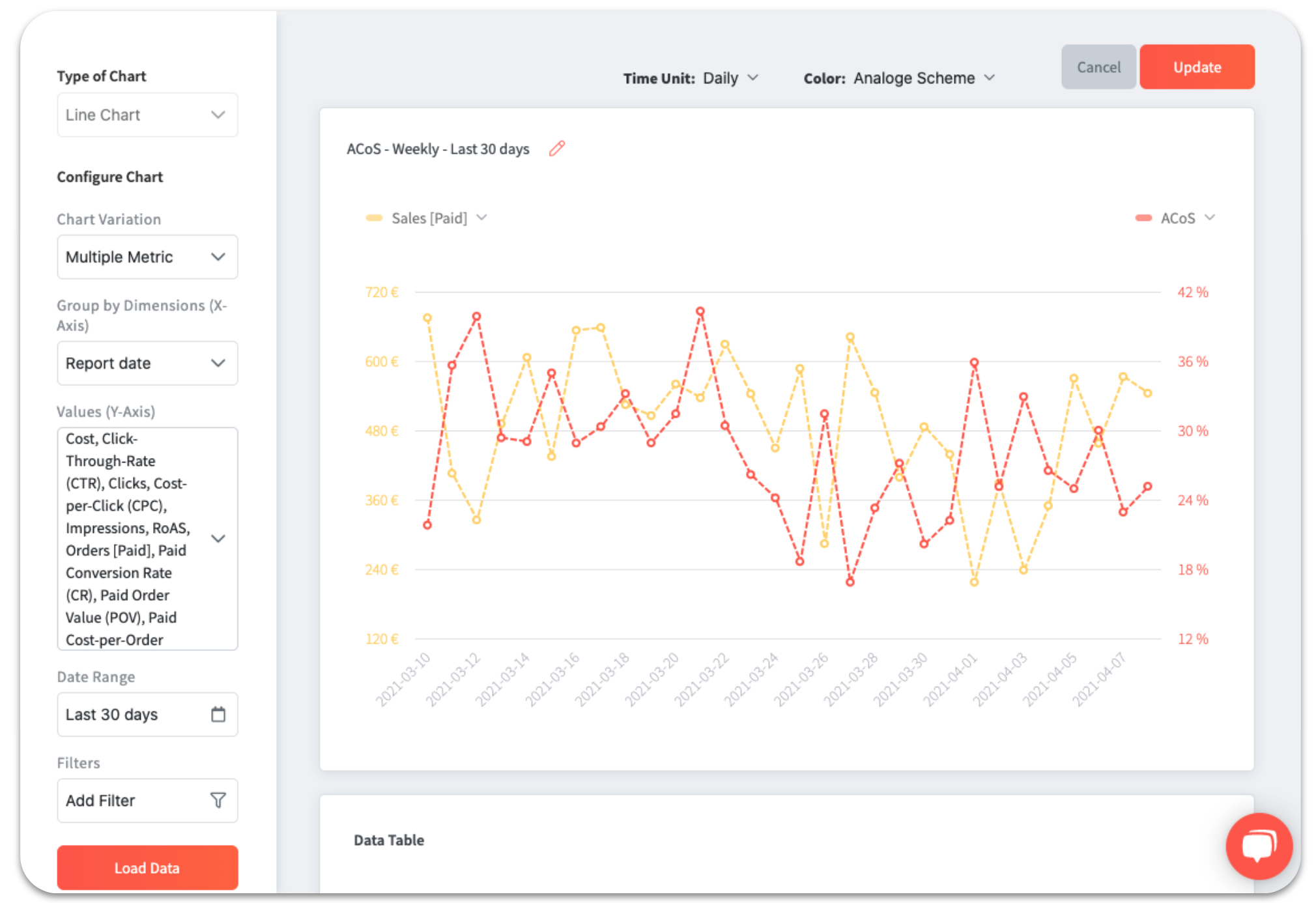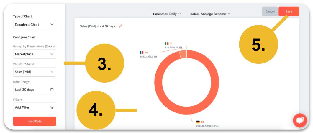 Note: Here you can change the type of chart as well as set the date range as default. If you only want to see a specific market or ASIN, feel free to set a filter.