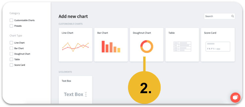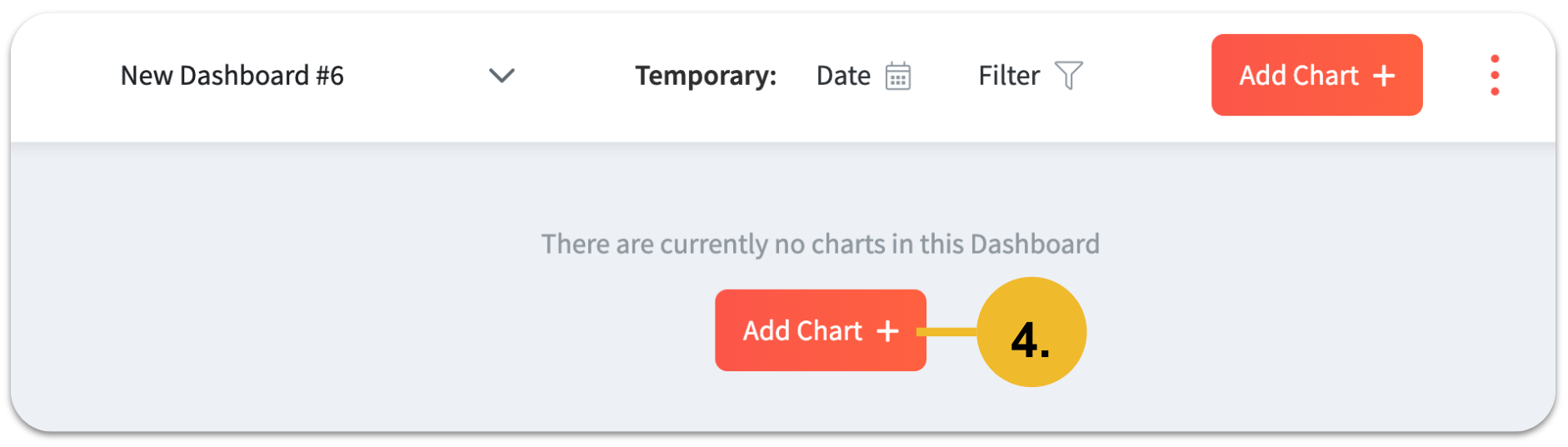 With just a few clicks you can add charts or tables to an existing dashboard. Click on "Add Chart" in the top right corner of your dashboard.