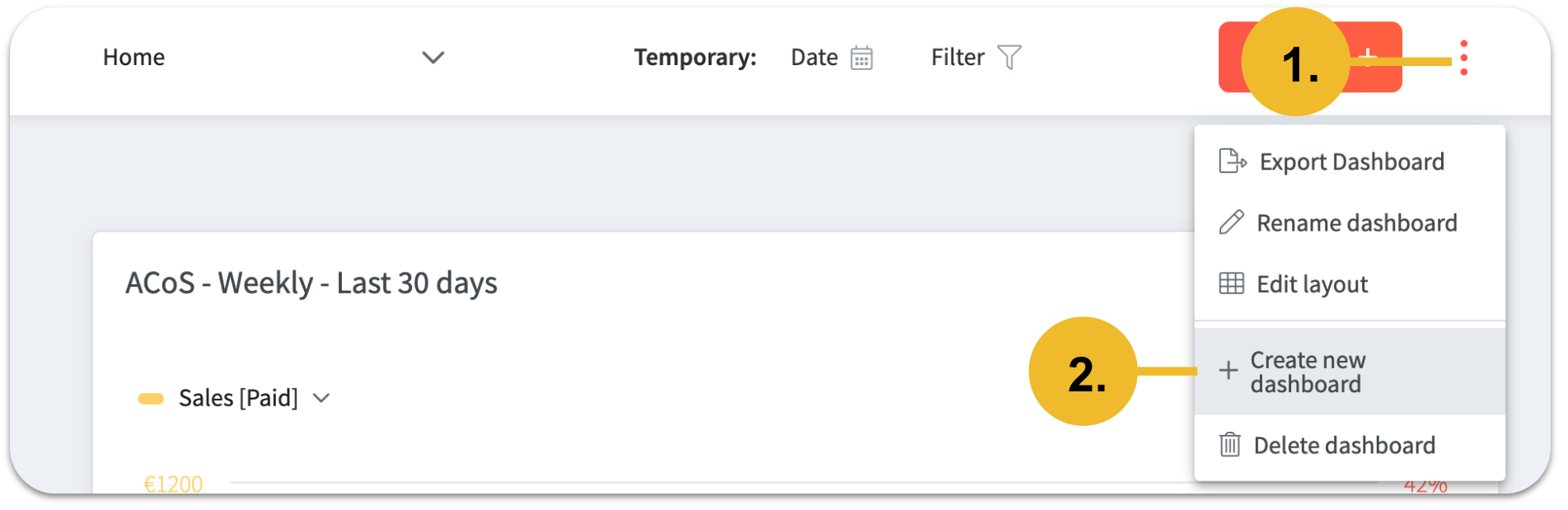 It is possible to create your own individual dashboard with just as few clicks. To do this you have to click on the dropdown menu. Then select "Create new dashboard".