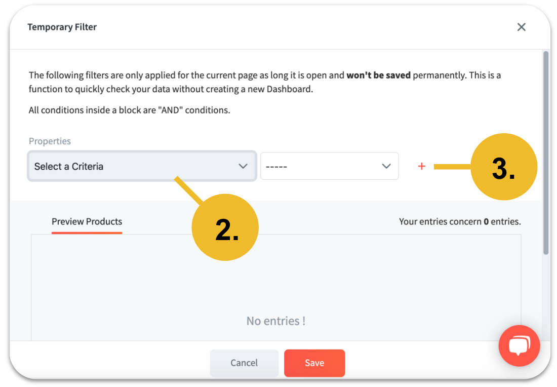 Besides the time period, you can also set more filter. To do this select "Filter" and insert your personal criteria. Additionally you can filter by several criteria. For this select "+" and add more criteria.